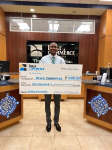 “First Commerce is committed to empowering people to enhance their financial well-being, and our MyWay Scholarship program is just one way we invest in helping young adults pursue their financial and academic goals,” said Cecilia Homison, First Commerce CEO. “Bryce and Kendall are remarkable students who demonstrate great achievement, both academically and in service to our community. We are incredibly proud to support them as they pursue bright financial futures.”